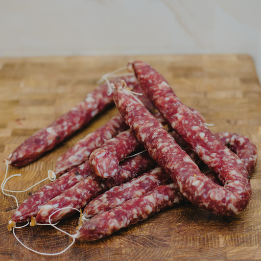 Scopri il frutto di 60 anni di maestria culinaria: le nostre salsicce secche artigianali. Ogni boccone racconta una storia di passione, tradizione e dedizione alla qualità, offrendo un'esperienza gustativa senza pari.